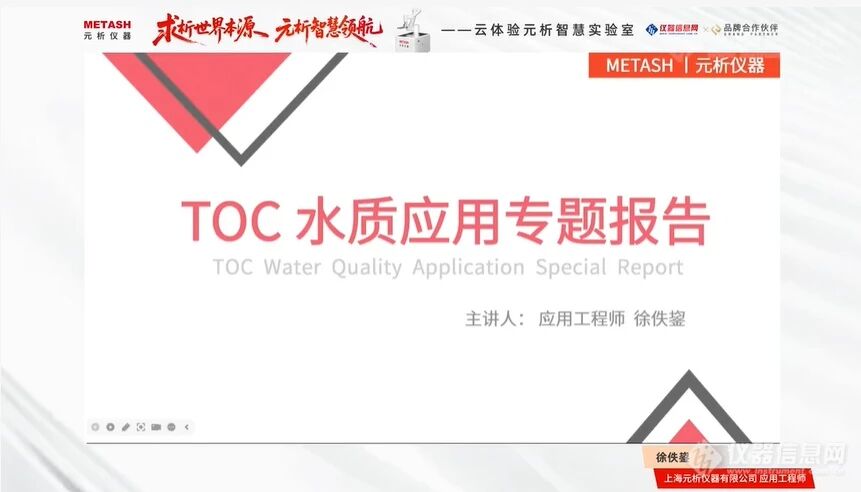 元析仪器应用工程师徐佚鋆在直播报告中分享了元析仪器的TOC产品矩阵、技术优势、合规性保障及实际应用验证情况,覆盖从实验室常规分析到工业在线监测的全场景需求。